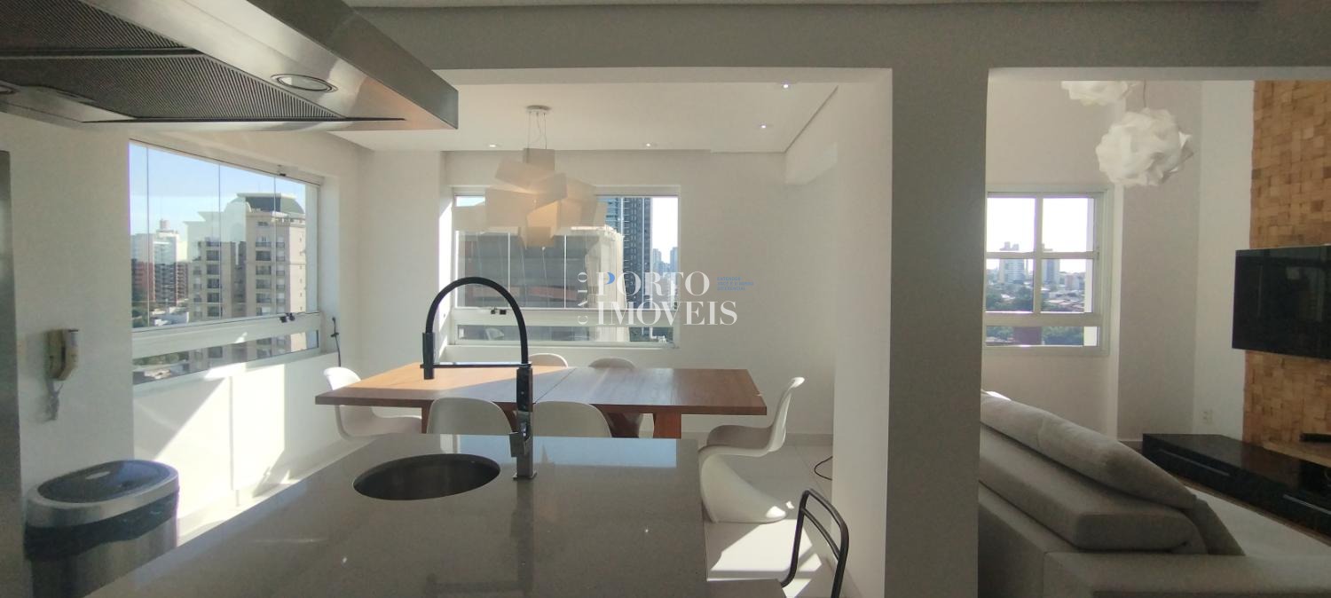 Apartamento com 2 suítes, banheiro social, sala com pé direito duplo, ambientes amplos e ensolarados, persianas automatizadas, cozinha americana planejada, lavanderia separada, muitos armários planejados, eletrodomésticos, móveis de qualidade, 2 vagas de garagem paralelas, lazer completo e ótima localização no Cambuí.