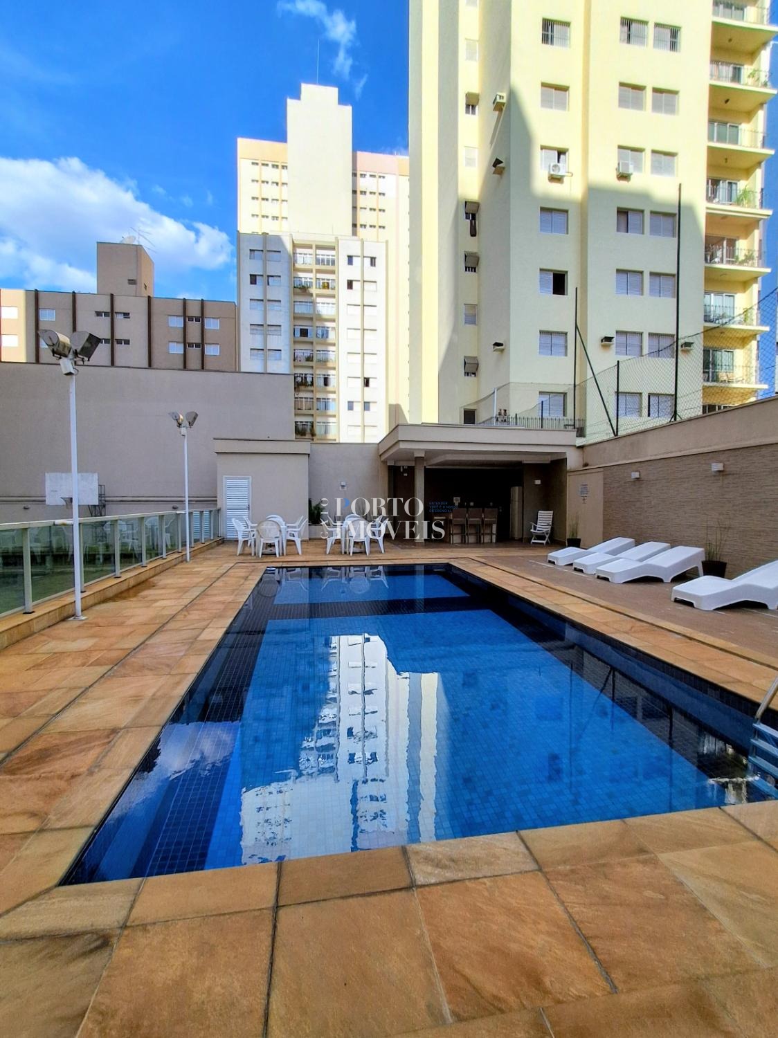 02 vagas de garagem cobertas, portaria 24 h, lazer com piscina, quadra, playground, salão de festas, jogos e academia.