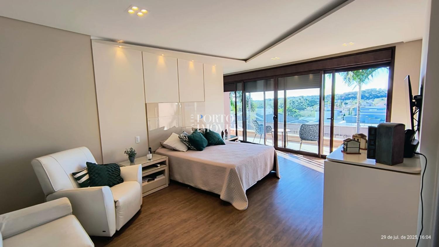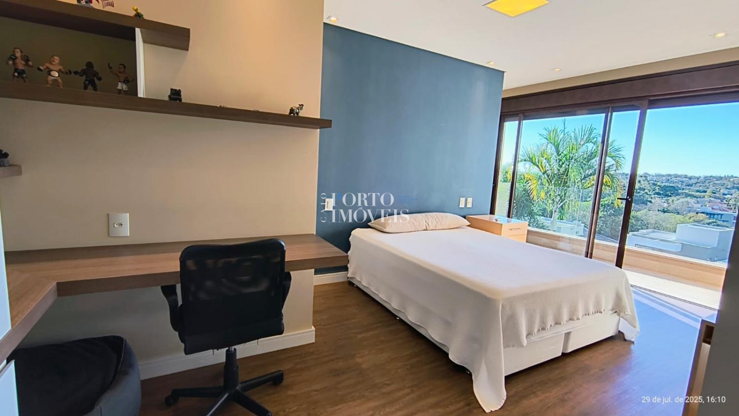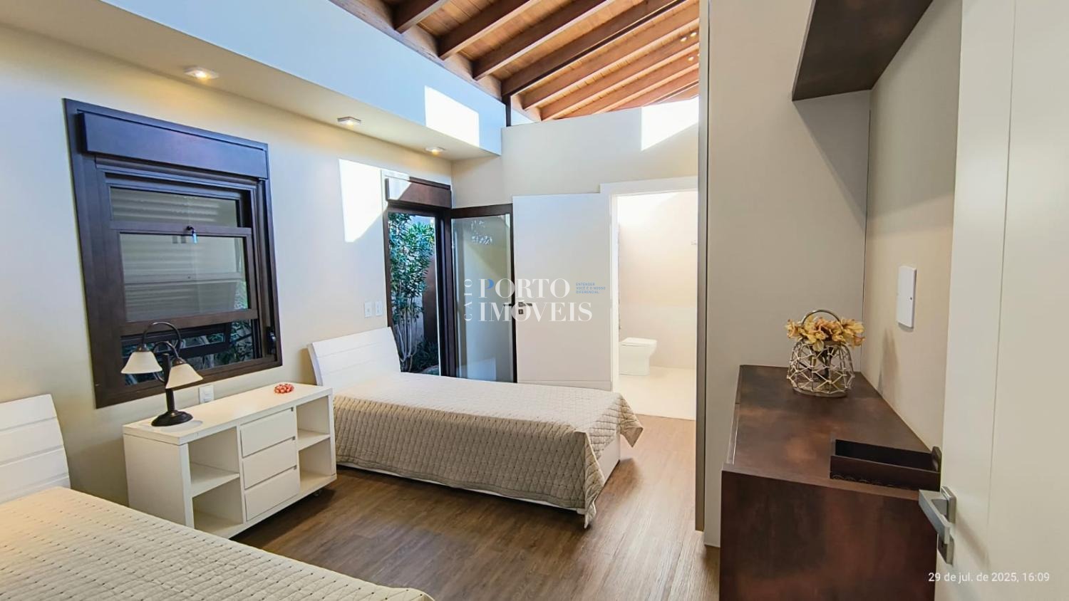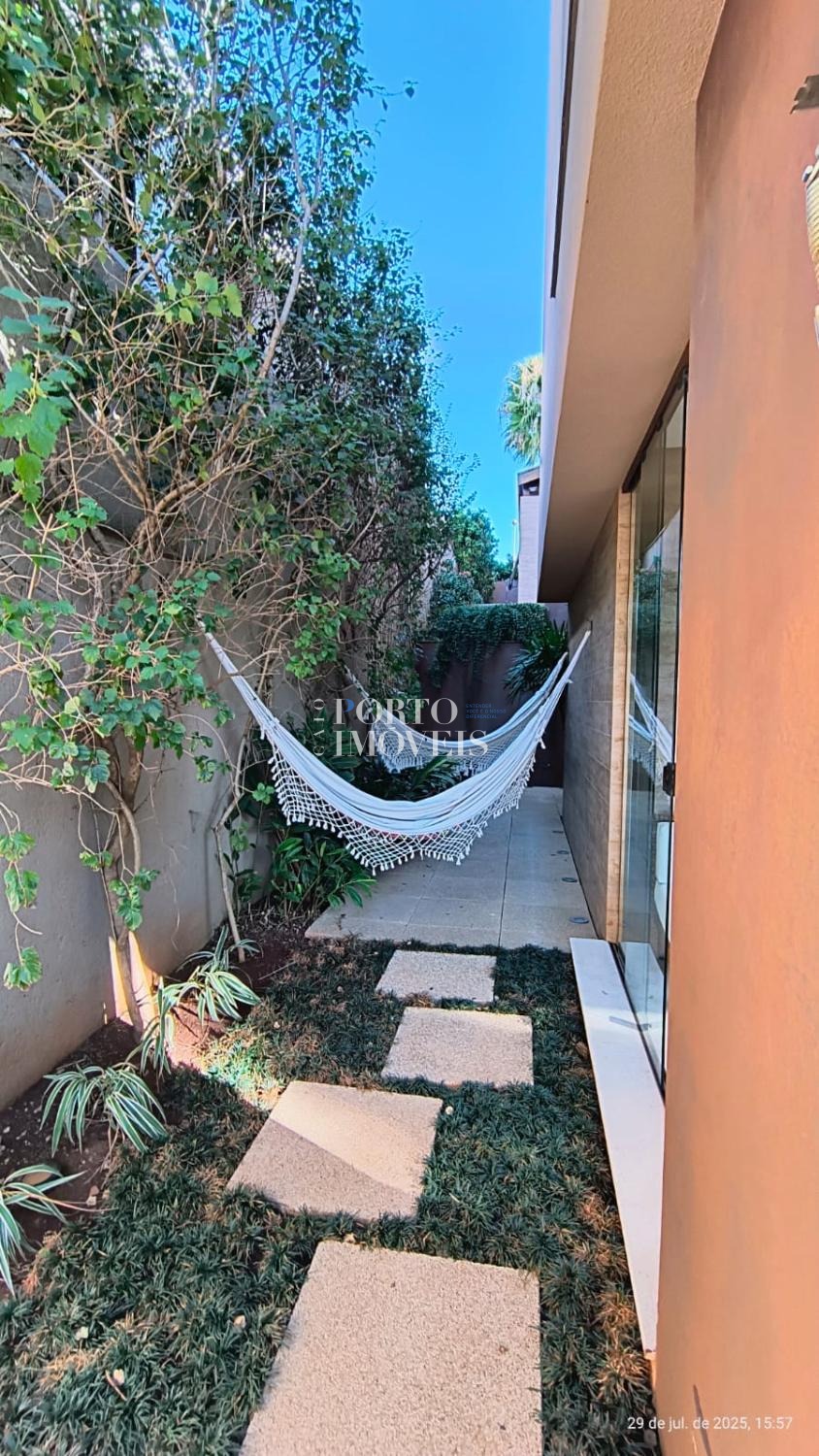 No pavimento superior duas amplas suites com sacada , no térreo a suíte master, uma suíte para hóspedes, escritório , rouparia, lavanderia e depósito.
