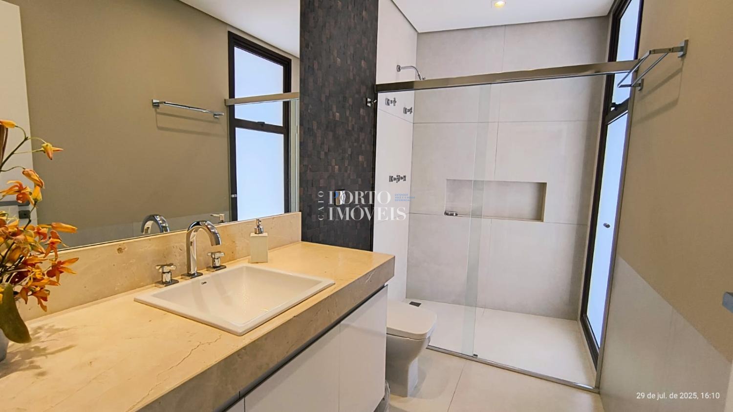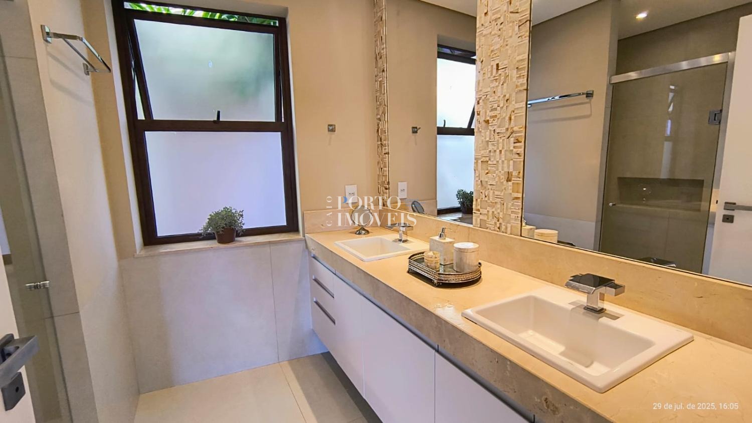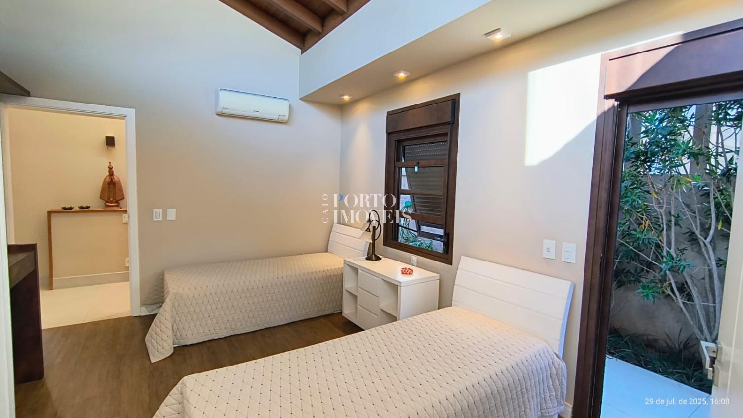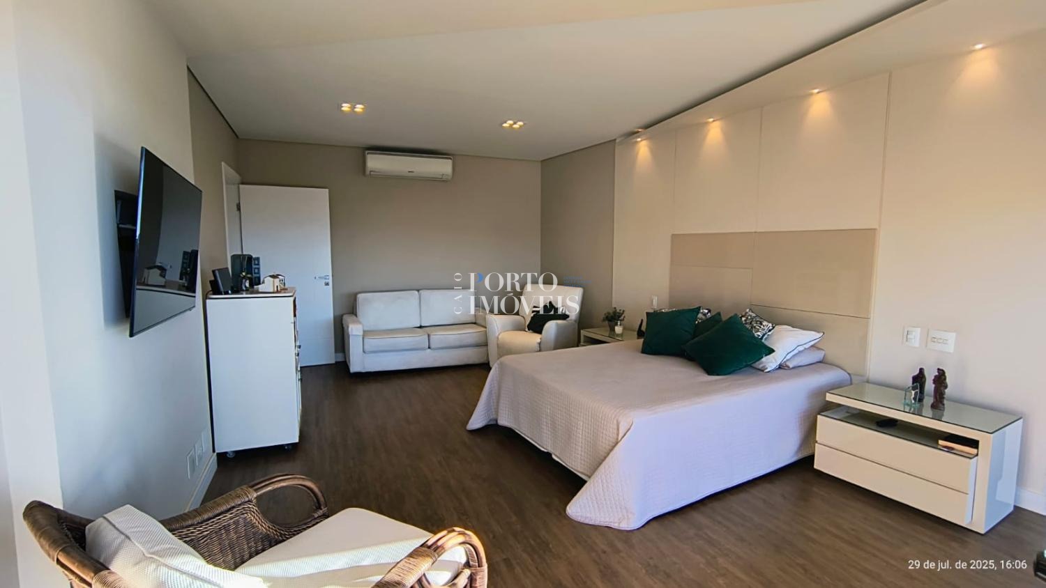 No pavimento superior duas amplas suites com sacada , no térreo a suíte master, uma suíte para hóspedes, escritório , rouparia, lavanderia e depósito.