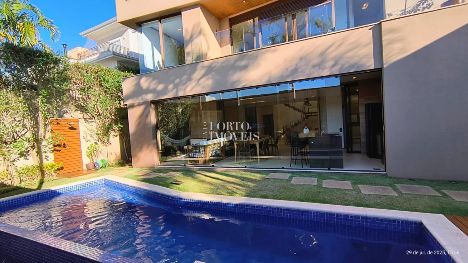 Pavimento inferior : Sala de estar , área gourmet completa , cozinha Kitchens , lavabo , home cinema , banheiro vestiário e dois depósitos . Piscina aquecida