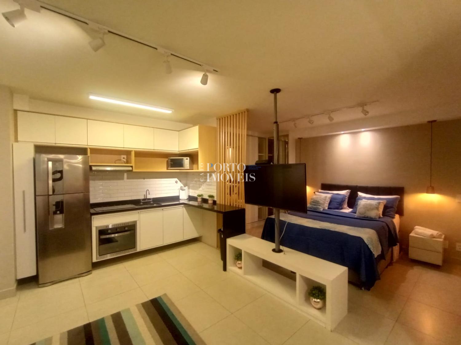 São 45,90m² bem divididos, com 1 dormitório com armários, banheiro, cozinha planejada, sala de TV, contendo ainda 1 vaga de garagem coberta.