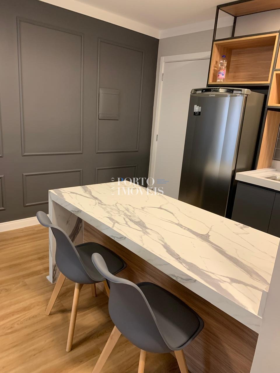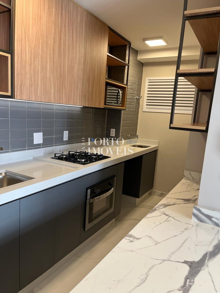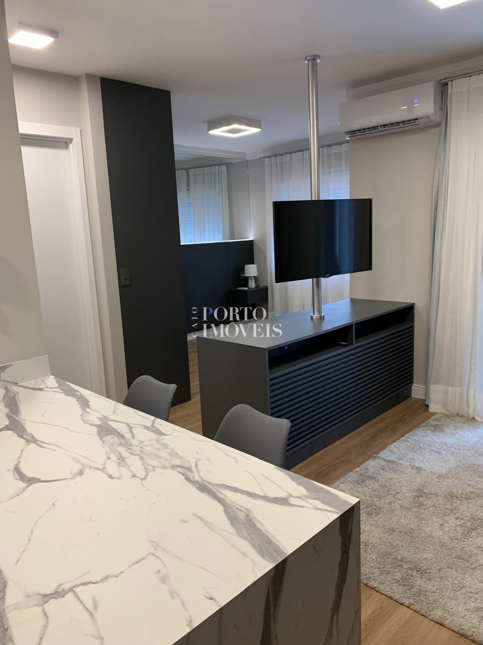 O apartamento possui planta inteligente e ambientes integrados, com sala aconchegante, cozinha funcional, varanda que garante boa iluminação natural e área de descanso bem distribuída. A unidade está mobiliada, com armários planejados e mobiliário de sala e cozinha, faltando apenas a cama — perfeito para personalização do morador ou rápida preparação para locação.